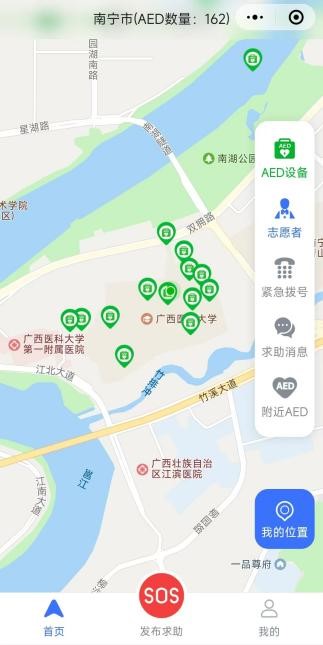 作为第二批全国学校急救教育试点学校,beat365负责绘制了广西AED急救地图,社会大众可以第一时间在手机上查询到离自己最近的AED设备存放地点。