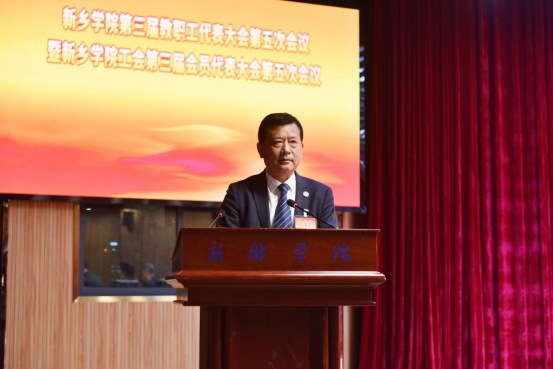 王孝俊代表学校作题为《锚定目标追求卓越奋力谱写高水平应用型大学建设发展新篇章》工作报告。王孝俊指出,面对严峻复杂的外部环境和艰巨繁重的发展任务,全校上下要坚持锚定申硕中心任务不动摇,抓“五学”、提“两力”,全力以赴拼发展、搞建设、办实事、解难题,总体实现全年目标任务,学校建设发展迈出坚实步伐。