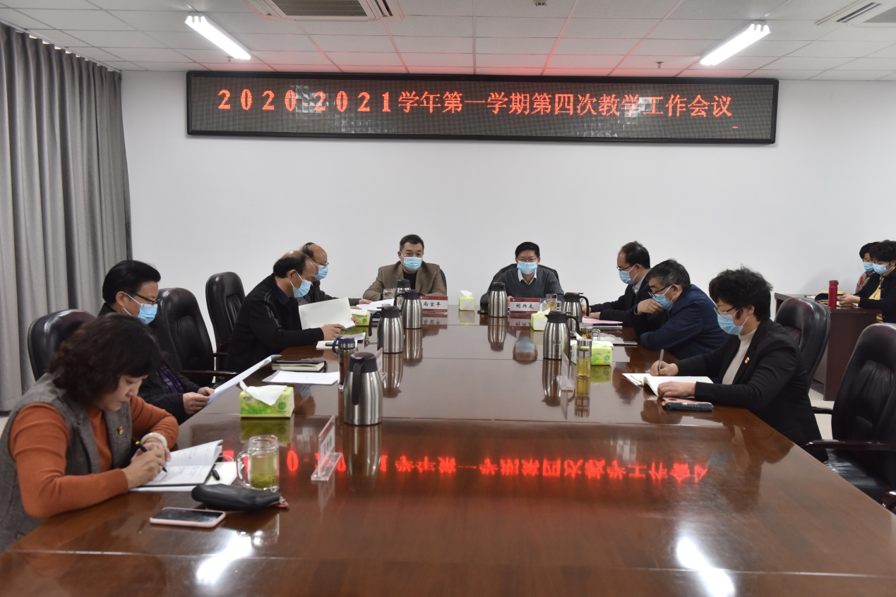 1月21日下午,万象城官网在图书馆南楼901会议室组织召开2020-2021学年第一学期第四次教学工作会议。学校全体校领导,团委、校办、教务处、发展规划处、学生处、招生与就业处、后勤管理处、教学督导与质量监控办公室负责人,以及各教学单位院长参加了会议。会议由副校长王选年主持。