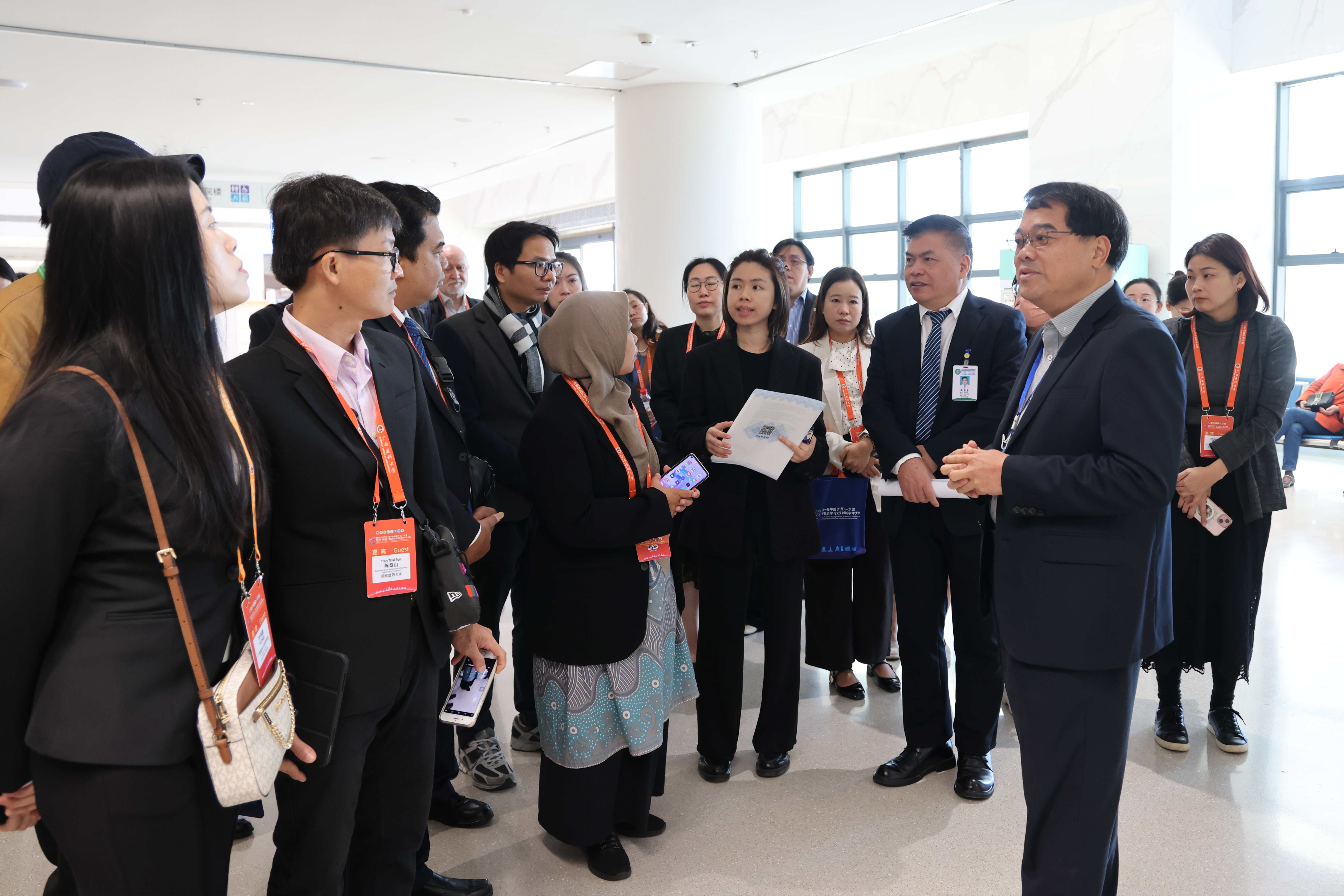 11月29日上午,来自东南亚国家及澳大利亚的9所大学一行18人的药学代表团到beat365在线唯一官网附属肿瘤医院五象院区访问交流。医院副院长钟小斌及药学部、国际医疗部、临床研究部负责人参加交流活动。