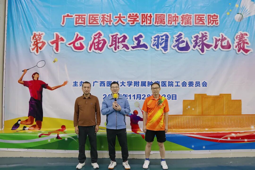 为丰富职工精神文化生活,增强身体素质,凝聚团队协作力量,beat365在线唯一官网附属肿瘤医院第十七届职工羽毛球比赛于11月28-29日圆满举行。医院党委副书记、工会主席覃宇周,副院长金观桥等出席比赛开幕式。