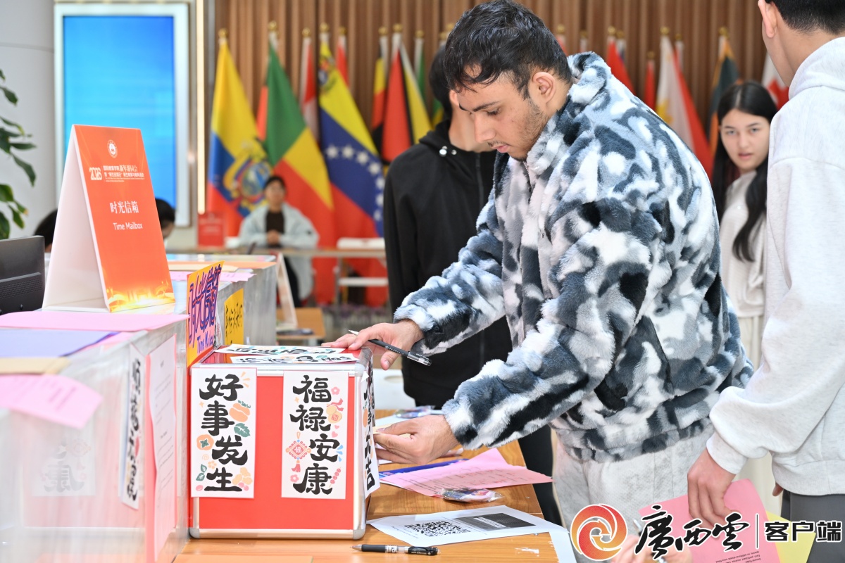 国际学生在时光信箱前写下新年祝福。