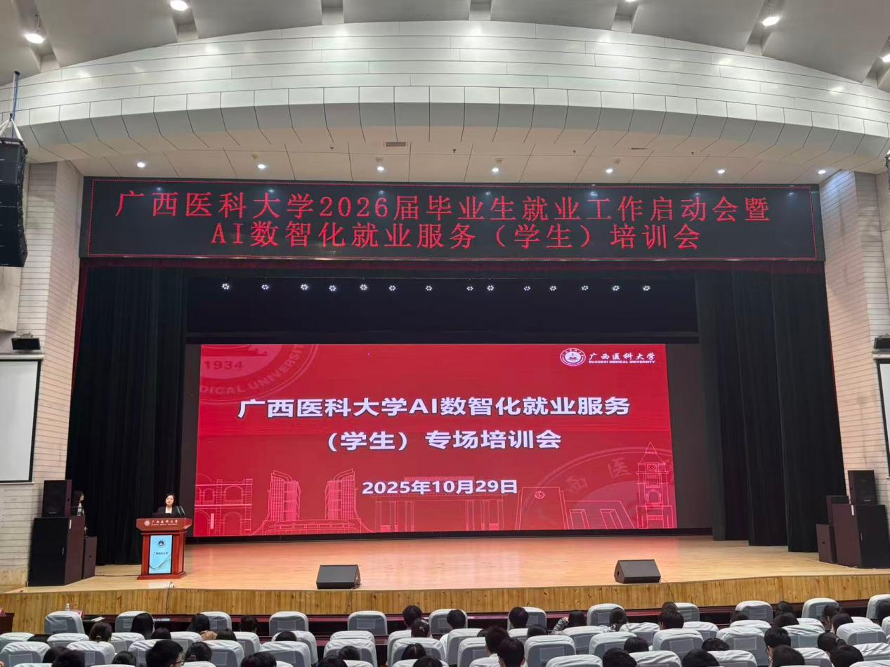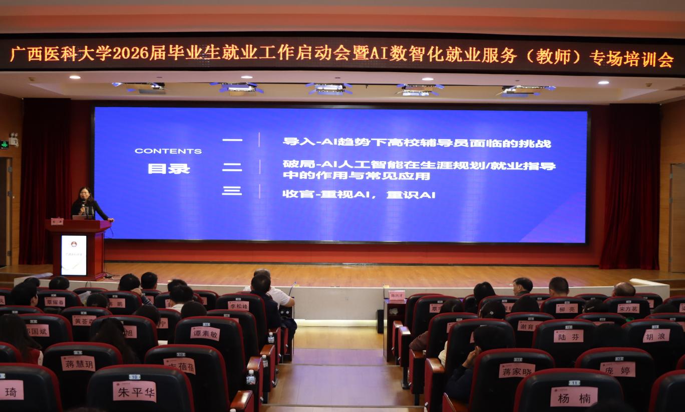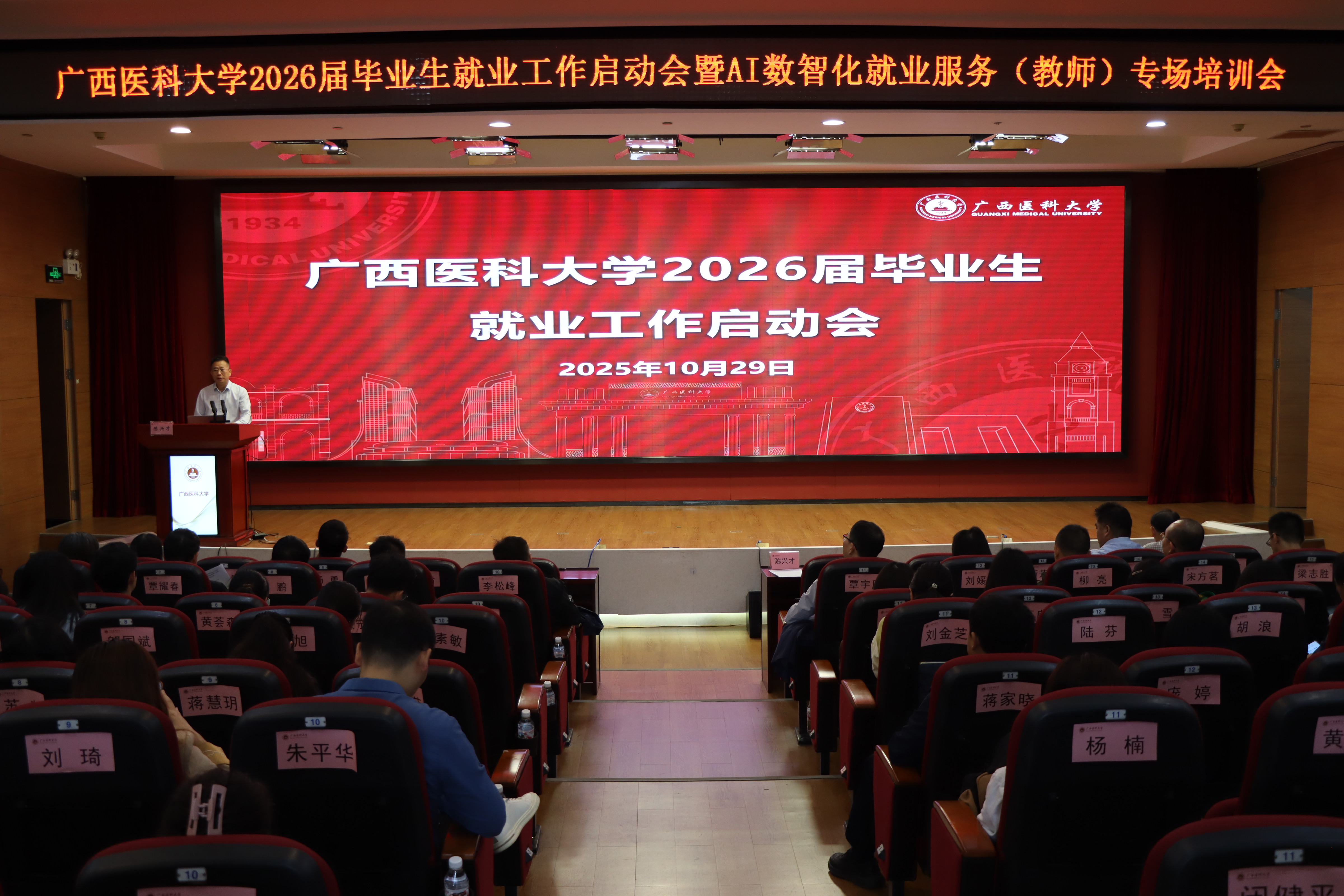 10月29日上午,beat365在南宁—校本部科技楼报告厅召开2026届毕业生就业工作启动、双选会协调暨AI数智化就业服务(教师)培训会。副校长陈兴才出席会议,相关职能部门、二级学院分管就业工作的院领导,负责2026届毕业生就业工作的辅导员、班主任、就业指导教师及招生就业处全体人员参加会议。