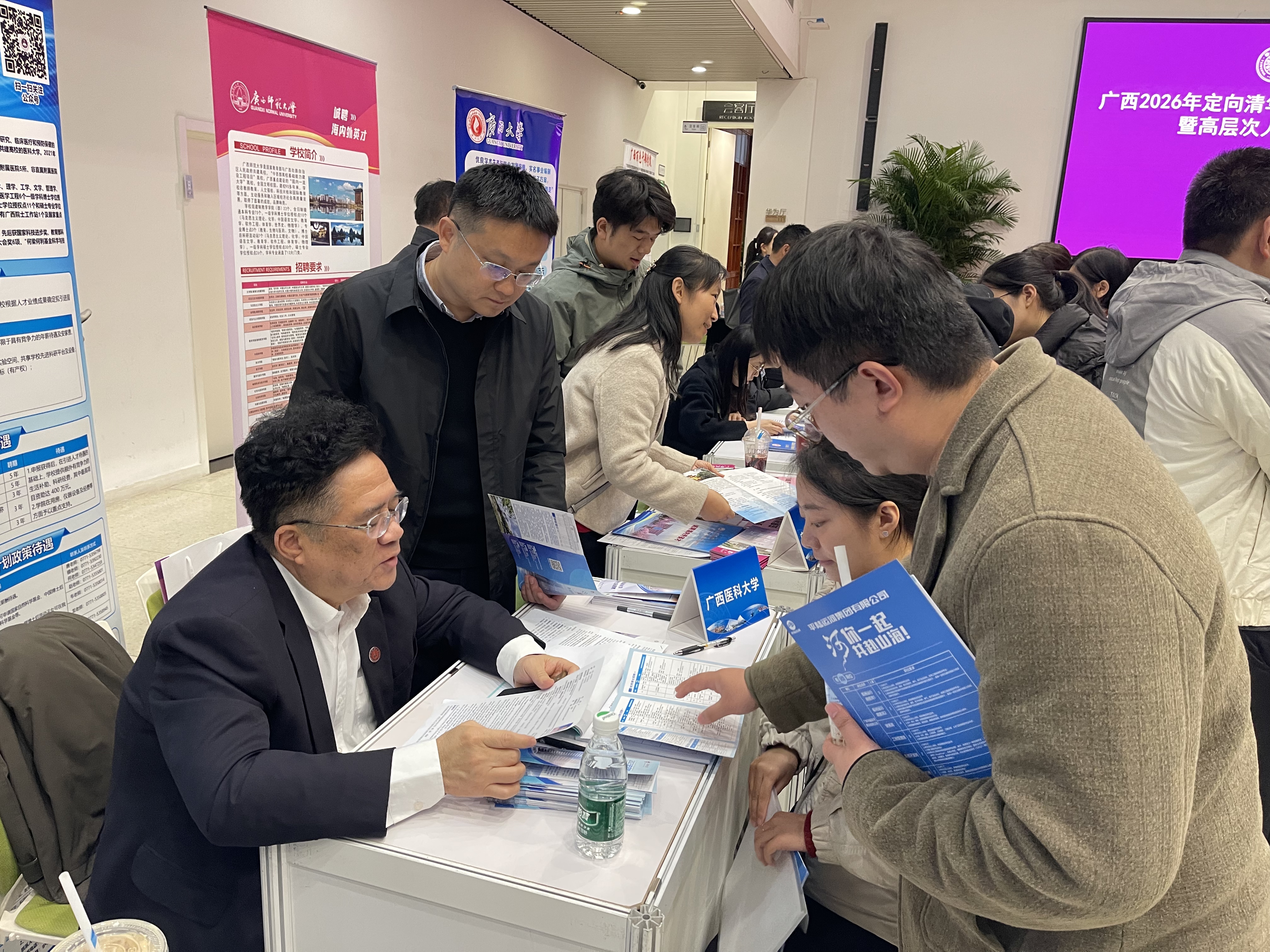 11月2日-4日,学校校长曾志羽带队随自治区党委组织部常务副部长李莉一行,赴北京大学、清华大学、中国人民大学参加广西2026年定向招录选调生宣讲会暨高层次人才专场招聘会。学校副校长卢德成参加活动。