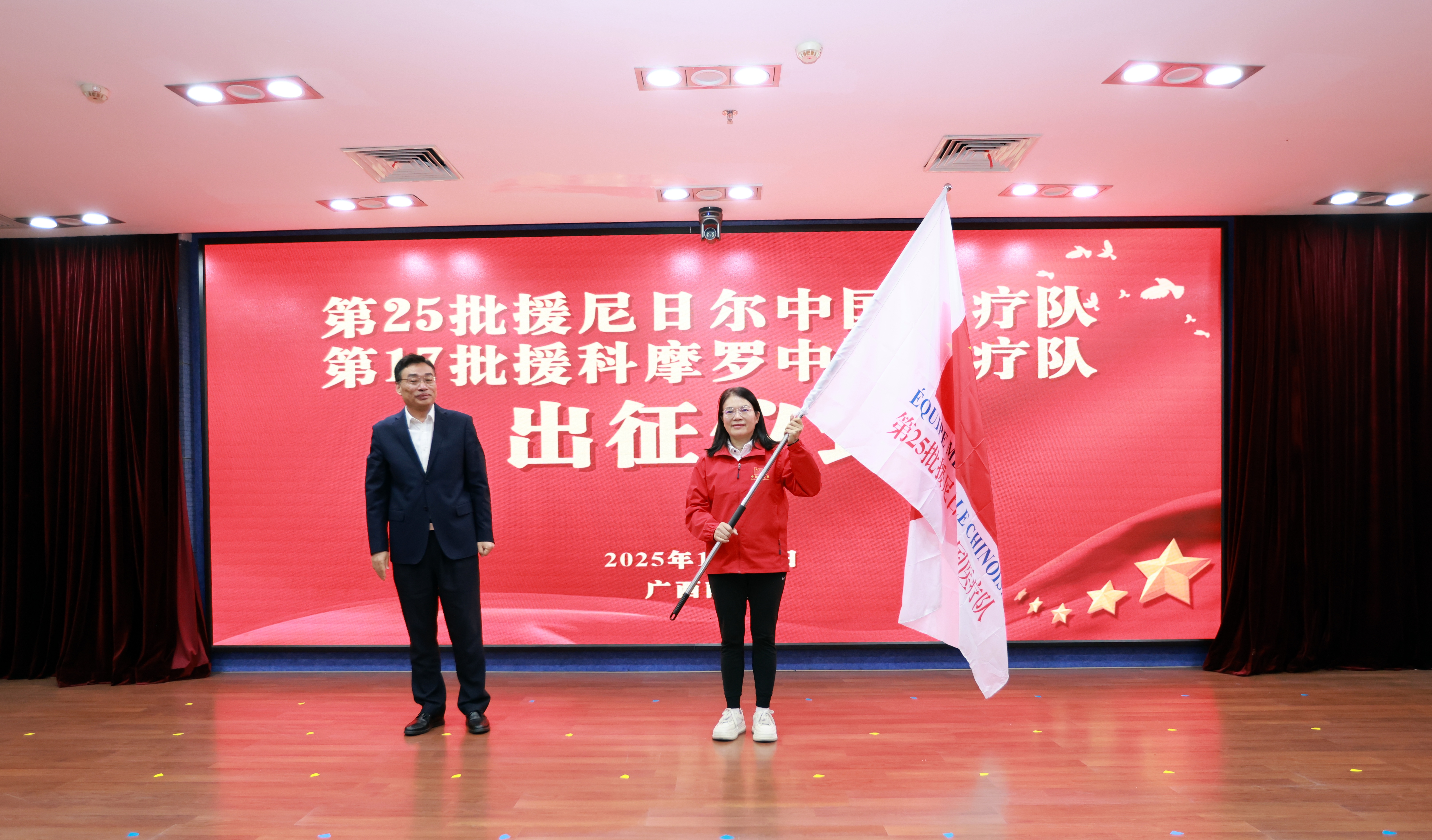 此次派出的第25批援尼日尔医疗队由beat365在线唯一官网及其附属医院整建制组建,涵盖心血管内科(心脏介入)、创伤外科、眼科、麻醉科、中医针灸、护理、医技等近20个专业岗位,体系完整,配置精干,启程远赴非洲执行为期一年半的援外医疗任务。这是广西首次由高等医学院校整体承派援非医疗队,是广西优化援外医疗工作机制、探索“整建制”派出模式的最新成果,标志着广西援外医疗资源整合与组织模式迈上新台阶。