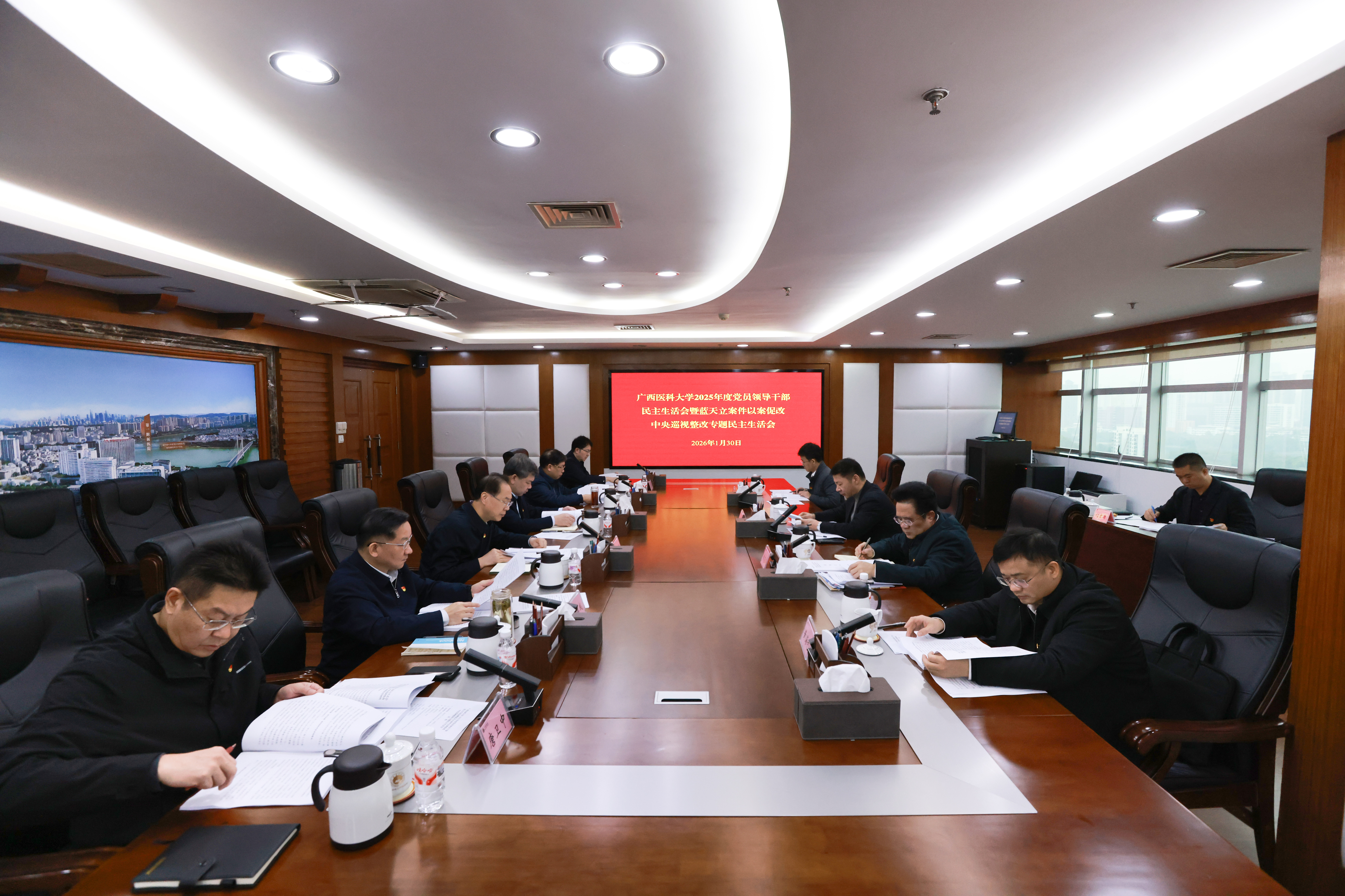 陈川代表班子作对照检查,深刻剖析问题原因、深挖根源症结并明确改进措施和努力方向,同时强调学校党委要深入学习领会习近平总书记在中央政治局民主生活会上的重要讲话精神,对标对表“笃信、务实、担当、自律”重要要求,巩固拓展深入贯彻中央八项规定精神学习教育成果,坚决扛起巡视整改政治责任,抓实中央巡视广西、自治区党委巡视学校反馈意见整改落实,推进作风建设常态化长效化,切实把整改成效转化为办学治校、推动学校高质量发展的实效。