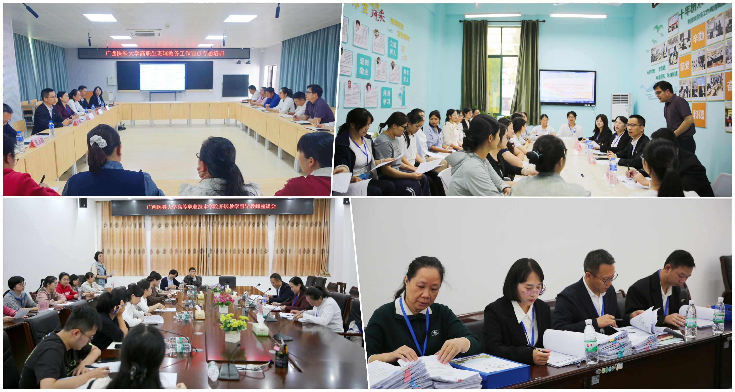 本次检查工作紧扣教学点办学质量这一核心,通过听课、访谈、查阅、评议等多种形式推进。检查组一行集中听取了北海市卫生学校教学点工作汇报,并分别与班主任、辅导员代表,教师代表、学生代表集体座谈,深入了解教学点办学情况并收集办学意见及建议。督导专家进行随机听课督导,与授课教师课后交流。教务科工作人员同步核查师资、教学、学籍、考务、成绩等档案材料。最后,召开现场反馈会,集中反馈问题并提出改进建议。林展提出,希望北海市卫生学校坚持立德树人根本任务,树立“三全育人”理念,持续优化育人环境,进一步提升办学质量、为学生健康成长保驾护航。北海市卫生学校党委书记洪肇春、校长罗世兴表示针对存在的问题进行认真整改、落实到位,不断提升双方合作办学质量。