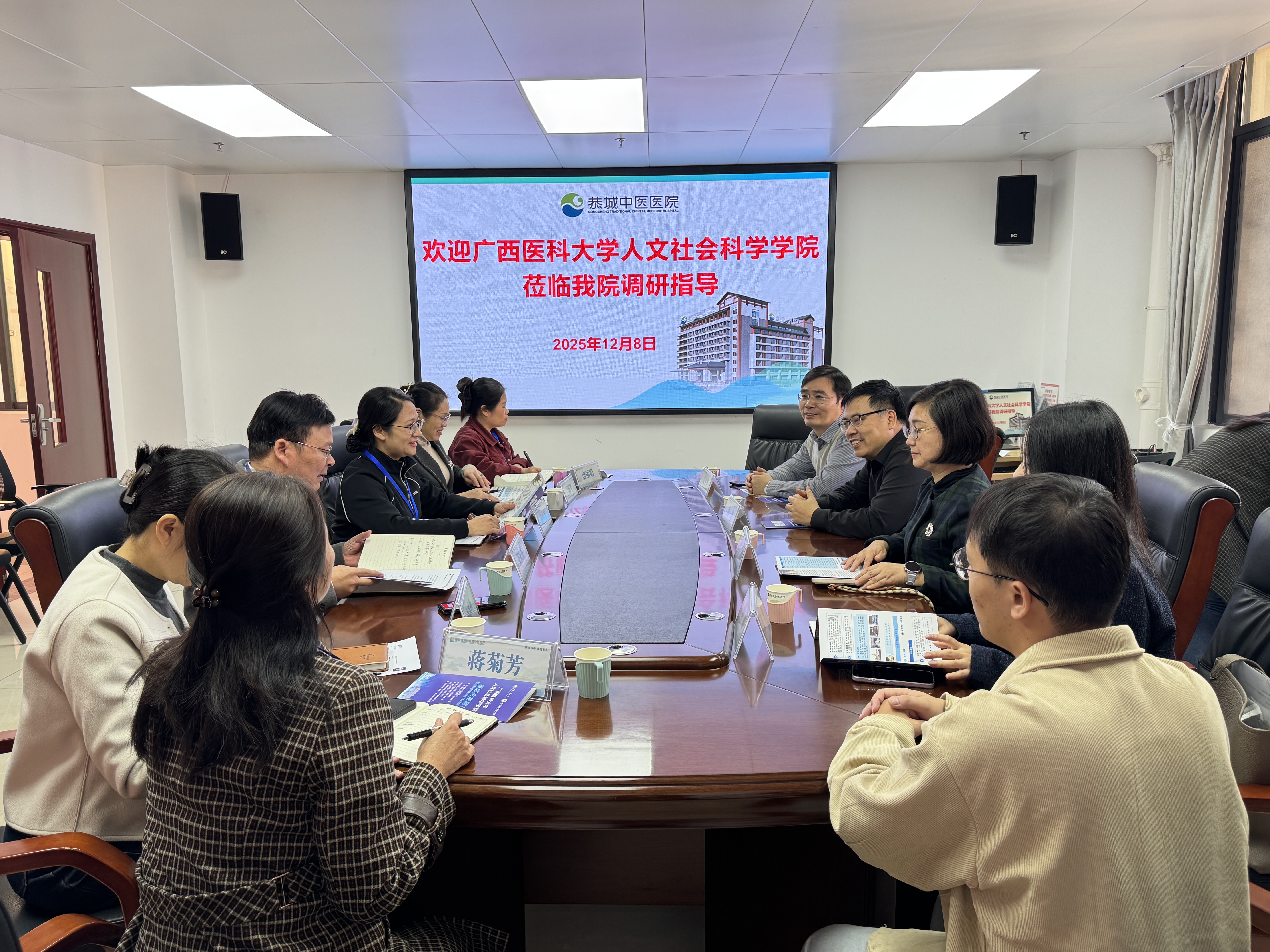 在恭城瑶族自治县中医医院,唐忠书记介绍了学院专业设置、人才培养等情况,并现场推荐毕业生,鼓励医院在职人员攻读beat365硕士研究生学历。双方均希望加强合作交流,结合医院需求为学生提供更多实习就业机会。