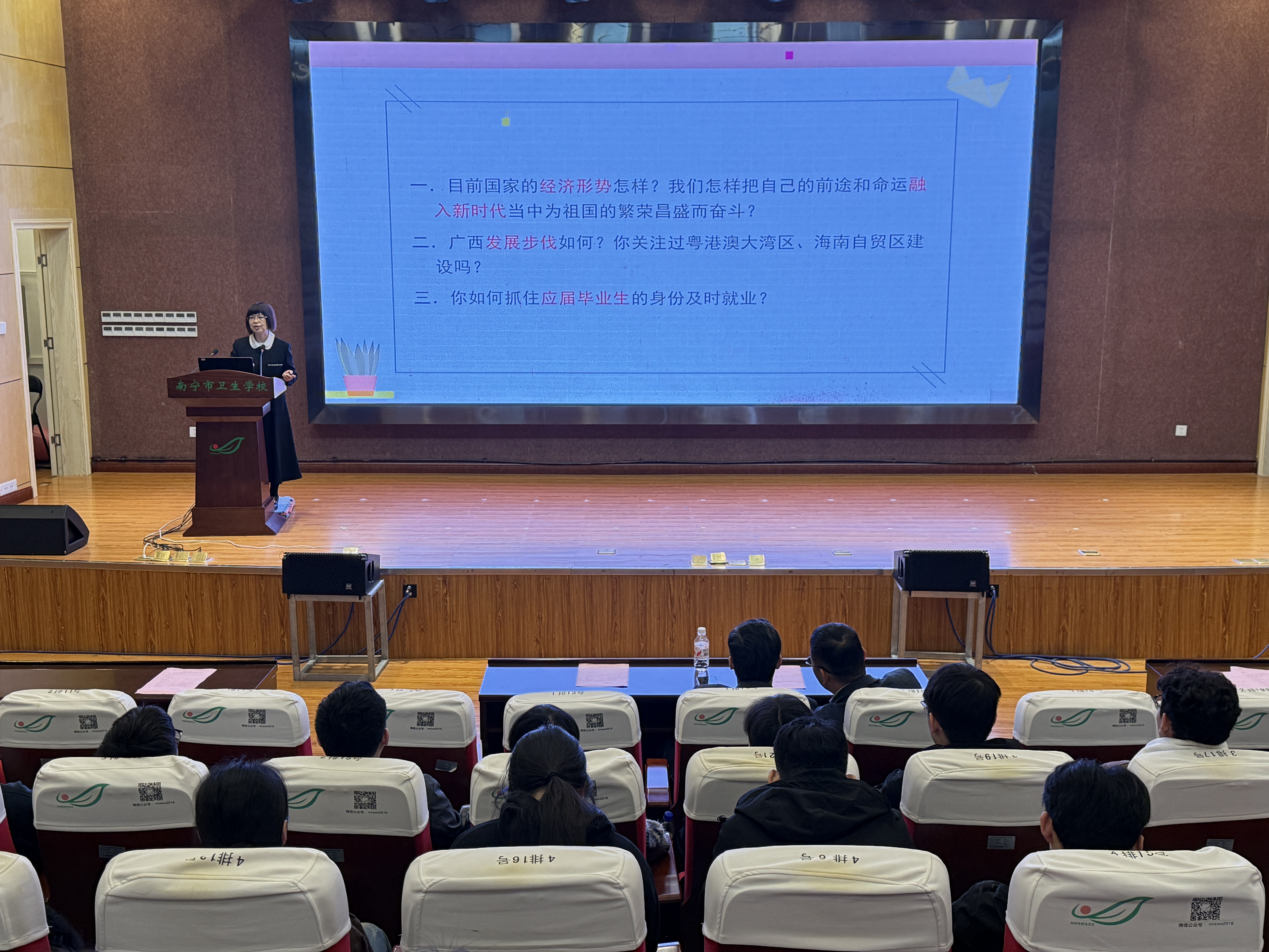 莫税英对南宁市卫生学校2026届“2+3”高职毕业生开展就业动员和就业指导,帮助毕业生认清就业形势,把握机会,积极主动就业。学院学生科老师给毕业生做求职指导专题讲座,围绕角色转变、简历制作和面试礼仪等关键环节为学生精准把脉。