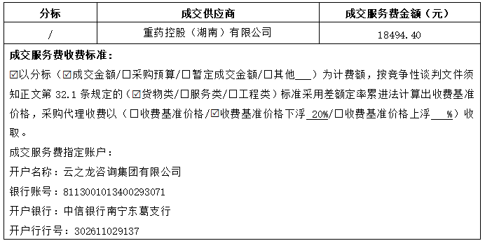 重药控股(湖南)有限公司评审报价为1738000.00元