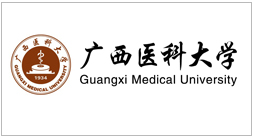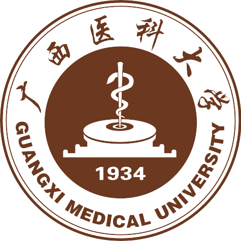 beat365在线唯一官网校徽,形状为圆形,中间为象征医神的蛇杖、象征时光的日暑和学校创办时间1934等元素,中文楷体beat365在线唯一官网围绕上半圆,英文黑体GUANGXI MEDICAL UNIVERSITY围绕下半圆,底色为金黄色。
