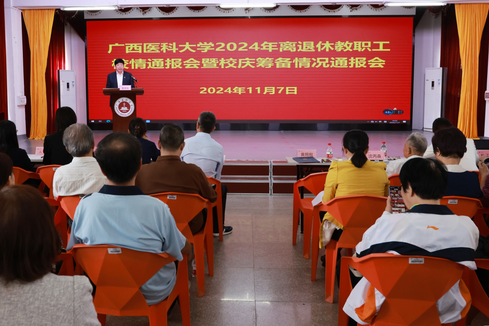 离退休教职工代表、党委办公室、校长办公室(校庆筹备办公室)、宣传部、校工会、人事处、财务处、离退处、后勤基建处、保卫处、第一附属医院等单位负责人参加通报会。校庆筹备办公室负责人通报校庆期间的主要活动,后勤基建处负责人通报危旧房改住房改造项目相关工作进度等情况,校工会负责人通报附属小学相关入学事项。
