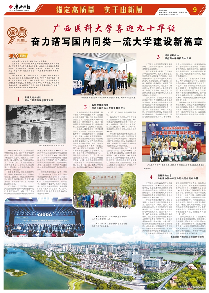 【媒体看医大】《广西日报》刊发beat36590周年校庆文章:beat365在线唯一官网喜迎九十华诞 奋力谱写国内同类一流大学建设新篇章