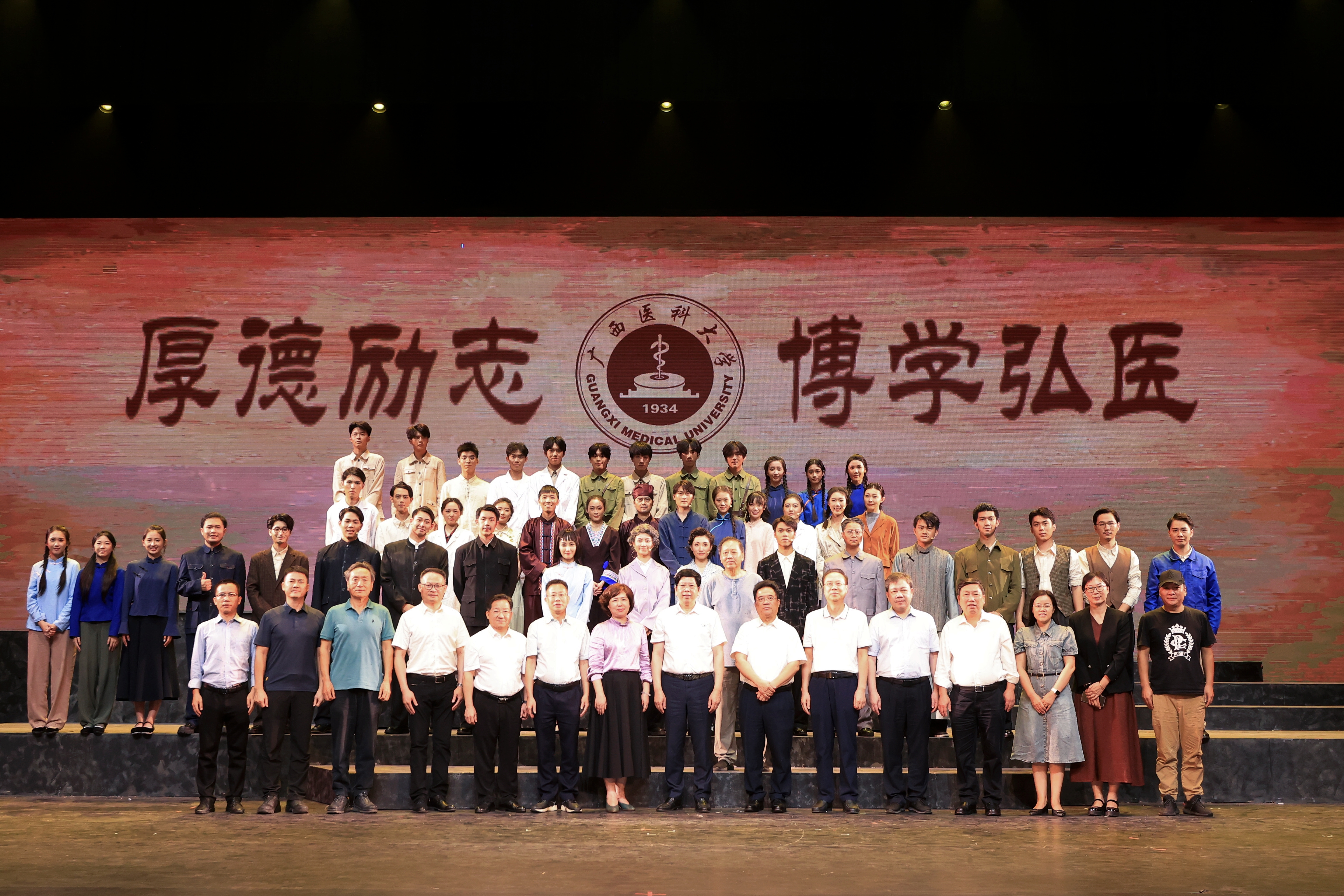本次活动连演三场,覆盖观众约2200人,首演同步开设南宁-武鸣校区、玉林校区线下转播分会场。演出现场反响热烈、气氛高涨,欢呼声与掌声迭起,笑声与眼泪交织。师生观众们纷纷表示,通过话剧增强对了对学校校史校情的了解,也对医大人的身份有了更深的认同与自豪,作为新时代医大人,要赓续医大精神血脉,砥砺前行向未来,共同书写医大奋进美好新篇章。