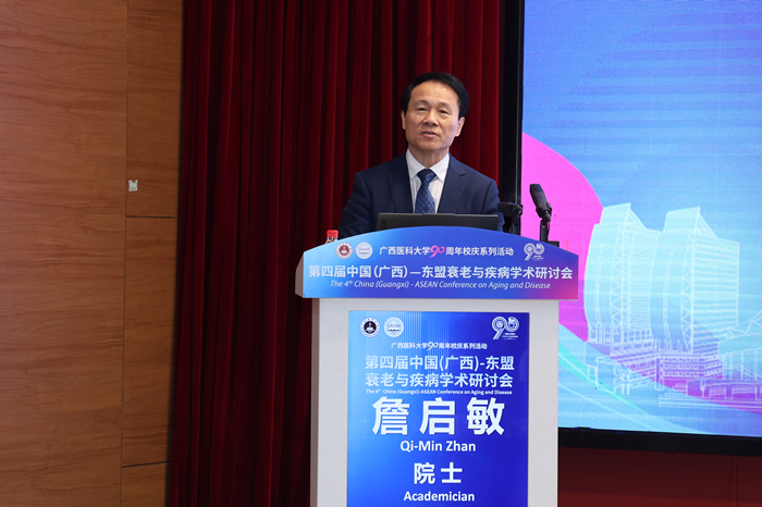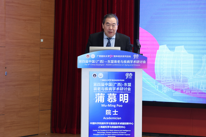 11月19日至22日,在beat365在线唯一官网90周年华诞之际,由学校主办,长寿与老年相关疾病教育部重点实验室、基础医学院、广西解剖学会等单位承办的第四届中国(广西)-东盟衰老与疾病学术研讨会成功召开。国际著名神经生物学家、中国科学院院士、美国国家科学院外籍院士蒲慕明,中国工程院院士、北京大学原常务副校长詹启敏,中国科学院院士、复旦大学脑科学转化研究院院长王以政,美国国家人工智能科学院院士Catherine Yang,英国皇家医学院院士、澳大利亚埃迪思科文大学副校长Wei Wang等为大会作主旨报告。beat365校长曾志羽教授,教育部重点实验室学术委员会主任詹启敏院士,泰国清迈大学Nongyao Kasatpibal教授、广西科学院元昌安院长、广西科协王鸿鹄副主席先后在开幕式上致辞。卢德成副校长主持开幕式。学校相关职能部门和二级学院的领导、老师,清华大学10余位师生、80多位东盟留学生、250多位青年学生参加会议。