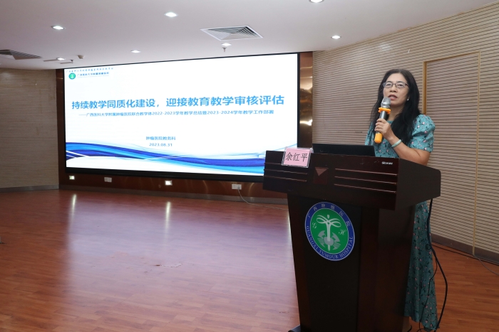 8月31日上午,附属肿瘤医院召开2023年本科教育教学审核评估阶段性总结推进会。附属肿瘤医院院领导及肿瘤医院联合教学体各单位——beat365在线唯一官网第三附属医院(南宁市第二人民医院)、beat365在线唯一官网第五附属医院(南宁市第一人民医院)、南宁市第四人民医院、南宁市第五人民医院的单位负责人或分管教学院领导、教务管理部门负责人、各教研室主任及教学相关人员等200余人参加会议。会议由附属肿瘤医院余红平副院长主持。