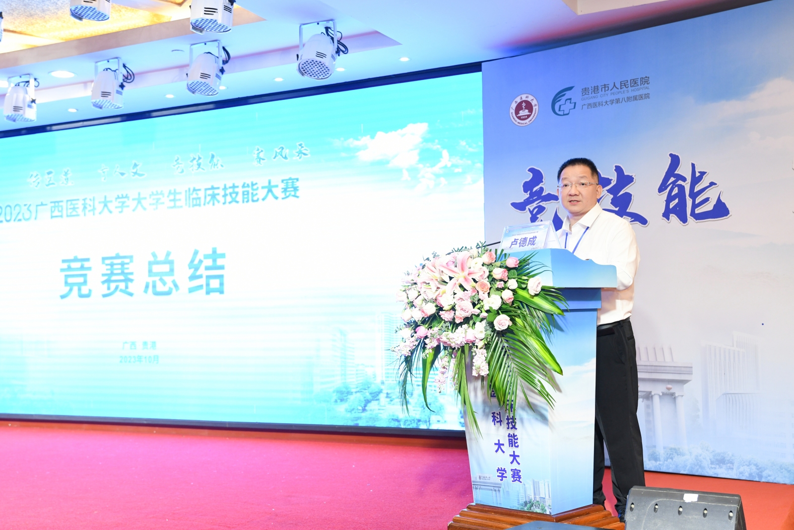 闭幕式上,卢德成副校长对获奖团队和选手表示热烈祝贺,对选手们在竞赛中展现出来的医大学子奋发向上的动人风采给予肯定。他希望各教学基地持续夯实医学人才培养主阵地,通过“以赛促学、以赛促教、以赛促改、以赛促建”,促进临床教学改革和医教协同,全面提升医学生综合素质和人才培养质量,助力“健康广西”建设和卫生健康事业高质量发展。