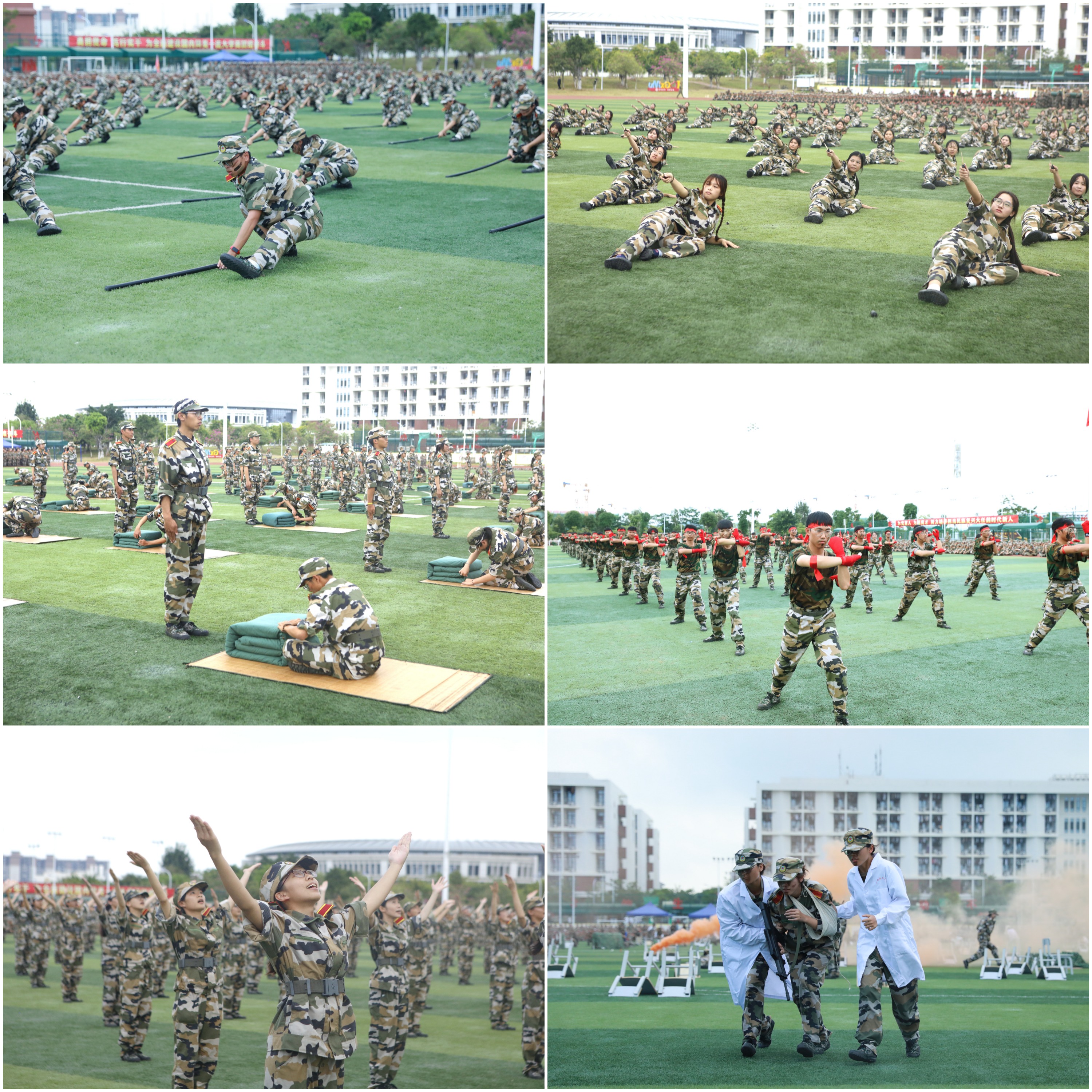 汇报总结大会军训成果展示在雄壮的国歌声中开始,首先是分列式,78个连队共4050名学生依次走过主席台前接受校领导和老师们的检阅;随后进行棍术、匕首操、整理内务、拳术、手语操和战术基础等汇报表演;学生代表梁炜明向老师和同学们分享了军训的收获与感想;蒋建国部长宣读表彰学生军训“先进个人”决定并作军训总结。