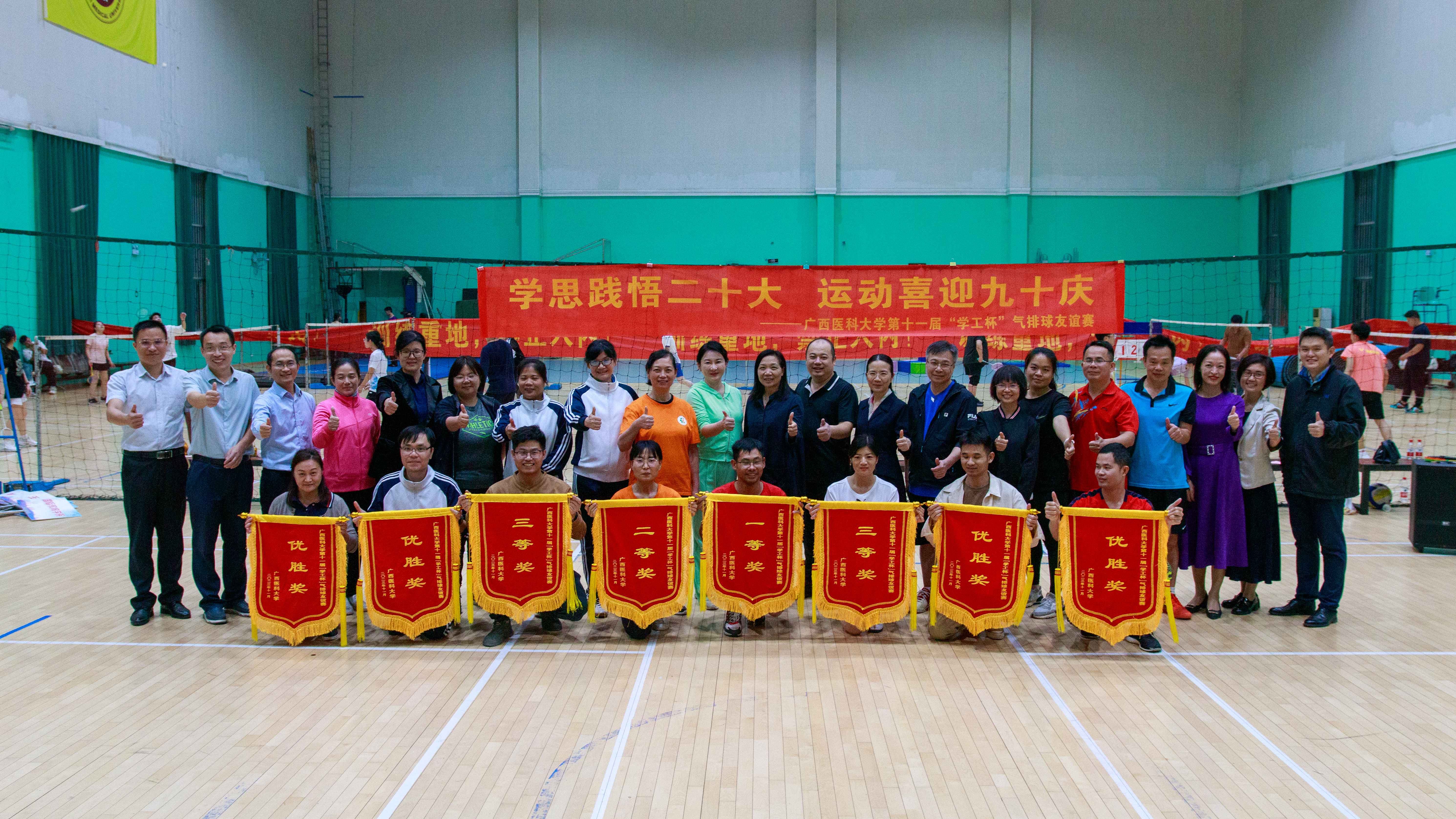 本届气排球友谊赛为学工团队搭建了交流的平台,进一步增进了各学院、职能部门之间的友谊。在今后工作中,学工队伍将以此次友谊赛为契机,把“学思践悟二十大 运动喜迎九十庆”的精神实质融入育人工作中,以顽强拼搏、积极向上的精神风貌迎接建校90周年。