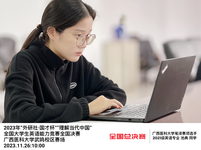 2023年“外研社•国才杯”“理解当代中国”全国大学生外语能力大赛分笔译、口译、写作、阅读、演讲共五个赛道,在11月4日的自治区级决赛中,beat365张煜、池典同学获笔译赛项自治区级金奖,汤怡辰、杨晰捷同学获阅读赛项自治区级金奖,四位同学同时晋级全国总决赛。经过赛前辅导和精心备赛,代表beat365参加全国总决赛的四位同学最终取得两个赛项四个铜奖的好成绩。