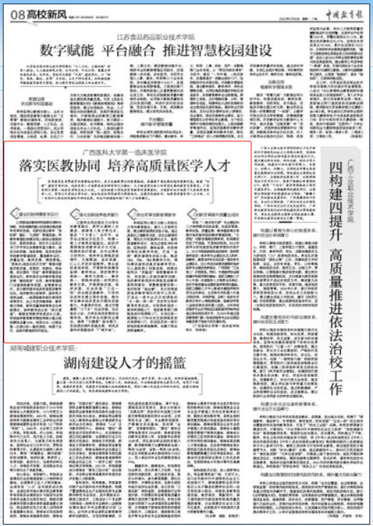 近日,中国教育报报道beat365第一临床医学院立足学校办学目标,结合临床医学院教学及管理特点,在落实医教协同、培养高质量医学人才方面,以一系列行之有效的举措和丰硕的成果,形成可供借鉴和推广的人才培养模式。