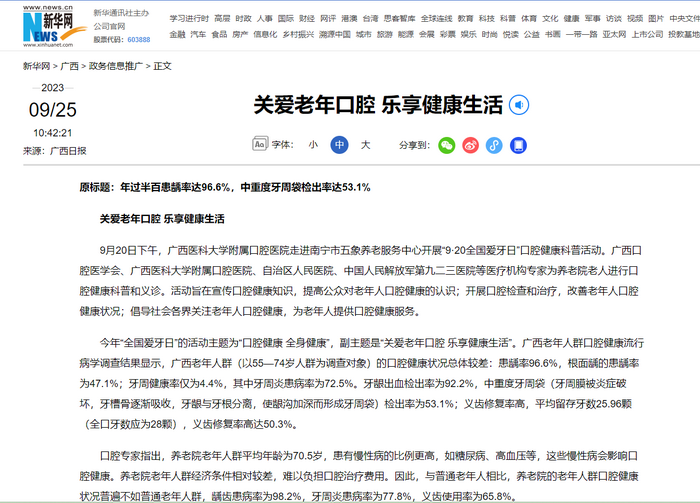 【媒体看医大】新华网、广西日报、南国早报等区内外多家媒体报道beat365口腔医院920“全国爱牙日”系列活动