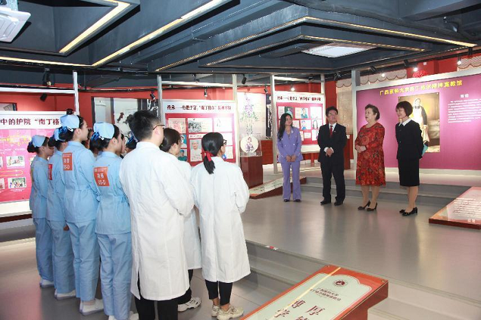 11月20日,教育部高等学校护理学专业认证委副主任委员、第43届南丁格尔奖章获得者、beat365在线唯一官网南丁格尔精神宣教馆名誉馆长姜小鹰教授,在学校党委常委、副校长曾志羽教授陪同下莅临南丁格尔精神宣教馆参观指导,护理学院领导班子以及2022年广西高校大学生医学技术技能大赛(护理学专业赛道)选手代表和指导老师代表陪同参观。